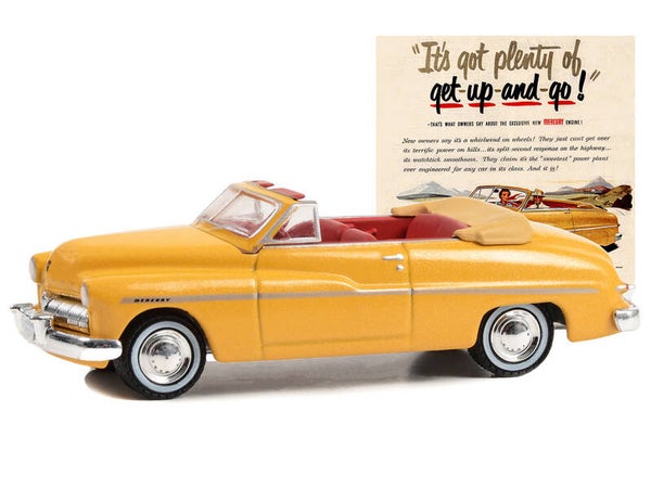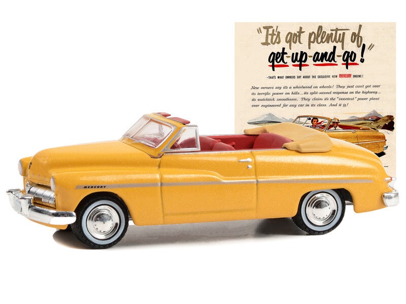 - Brand new 1/64 scale diecast car model of 1949 Mercury Eight Convertible Yellow Metallic with Red Interior "It’s Got Plenty Of Get-Up-And-Go!" "Vintage Ad Cars" Series 9 die cast model car by Greenlight.