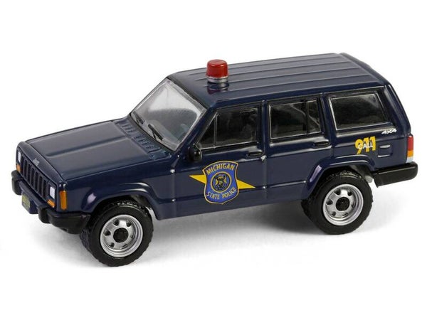 - Brand new 1/64 scale diecast car model of 2001 Jeep Cherokee "Michigan State Police" Dark Blue "Hot Pursuit" Series 46 die cast model car by Greenlight.