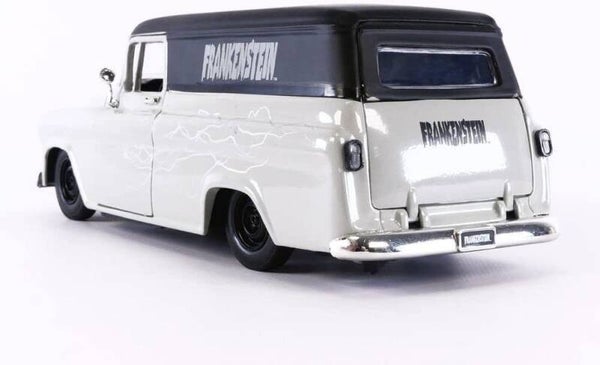 - Brand new 1/24 scale diecast car model of 1957 Chevrolet Suburban Gray and Black with Graphics and Frankenstein Diecast Figurine "Universal Monsters" "Hollywood Rides" Series die cast model car by Jada.