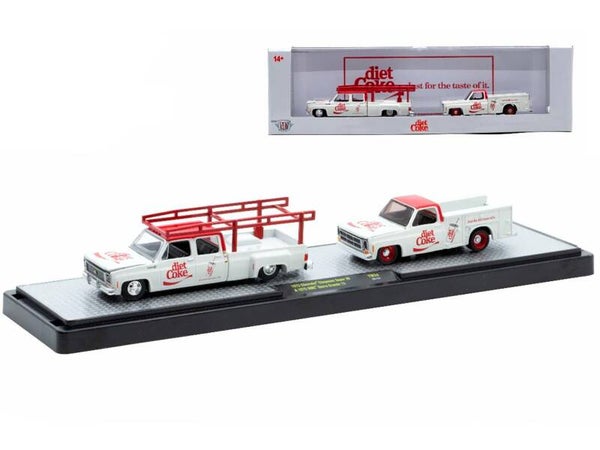 - 3) 1973 Chevrolet Cheyenne Super 30 Pickup Truck White with Red Top and 1975 GMC Sierra Grande 15 Pickup Truck White with Red Top "Diet Coke".