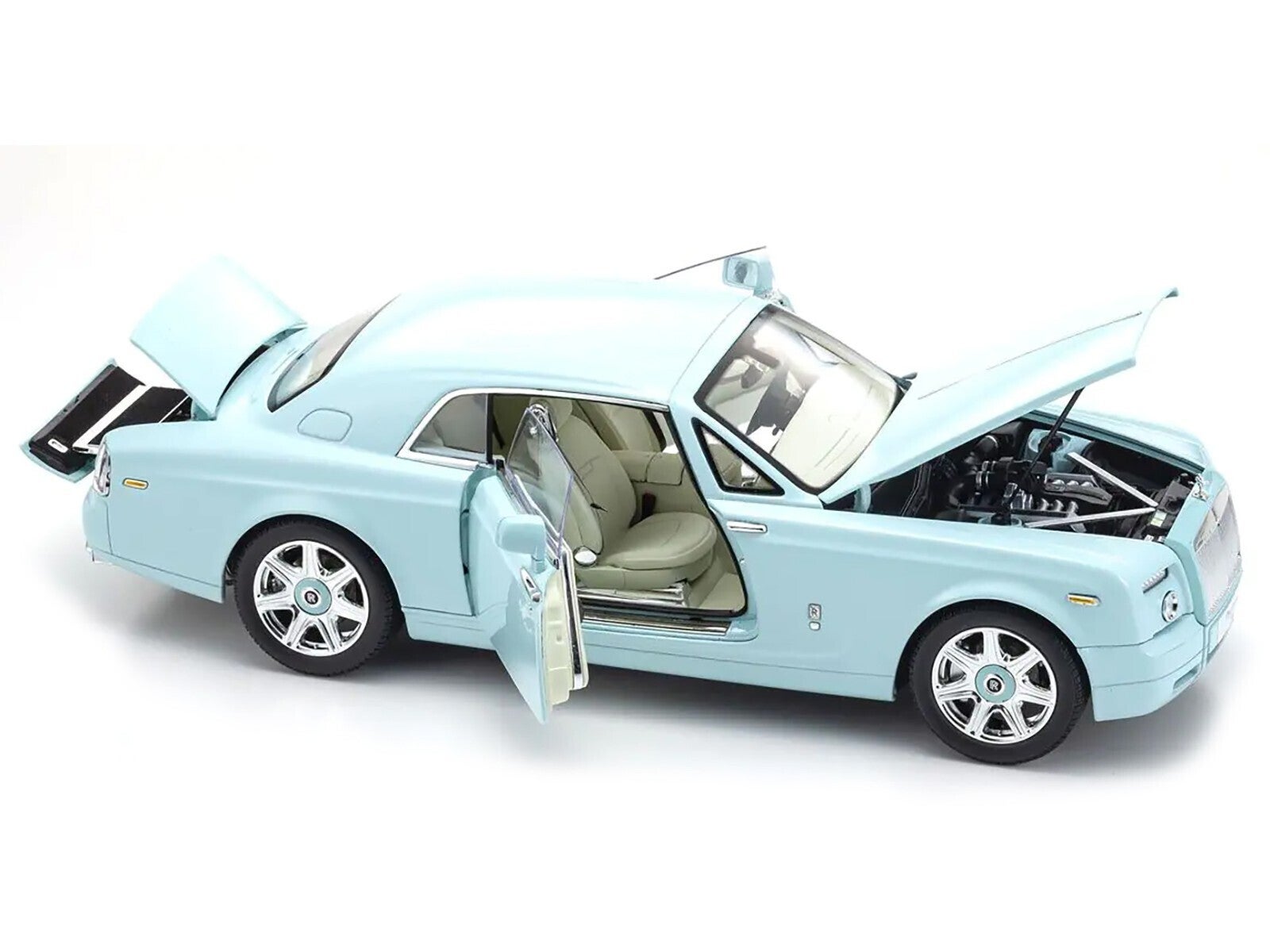 - Brand new 1/18 scale diecast car model of Rolls Royce Phantom Coupe Turquoise die cast model car by Kyosho.