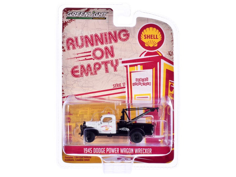 - Brand new 1/64 scale diecast car model of 1945 Dodge Power Wagon Wrecker Tow Truck "Shell Oil" White and Black "Running on Empty" Series 17 die cast model car by Greenlight.