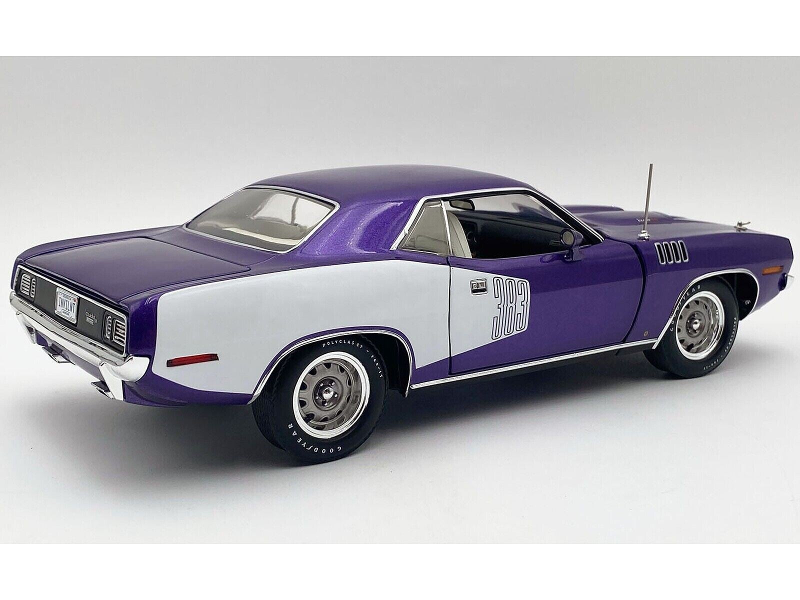 - Brand new 1/18 scale diecast car model of 1971 Plymouth Barracuda Violet Metallic and White Limited Edition to 350 pieces Worldwide die cast model car by ACME.