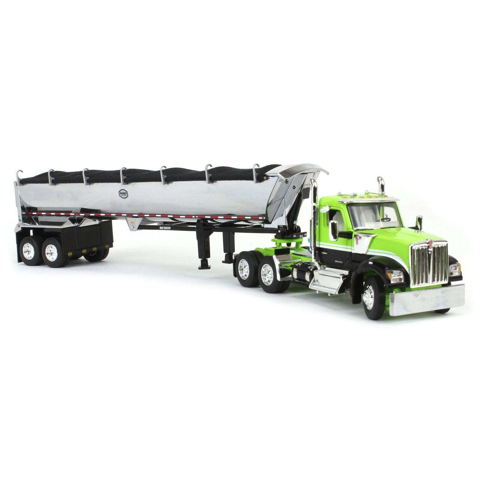 - Brand new 1/64 scale diecast model of Kenworth W990 Day Cab and MAC Half-Round Tandem-Axle Dump Trailer Lime Green and Black die cast model by DCP/First Gear.