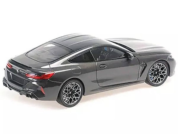 - Brand new 1/18 scale diecast car model of 2020 BMW M8 Coupe Gray Metallic with Carbon Top die cast model car by Minichamps.