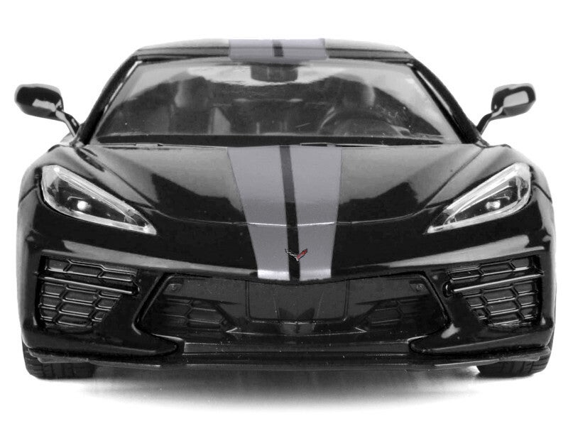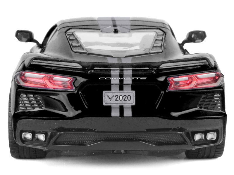 - Brand new 1/24 scale diecast car model of 2020 Chevrolet Corvette C8 Stingray Black with Silver Stripes "Timeless Legends" Series die cast model car by Motormax.