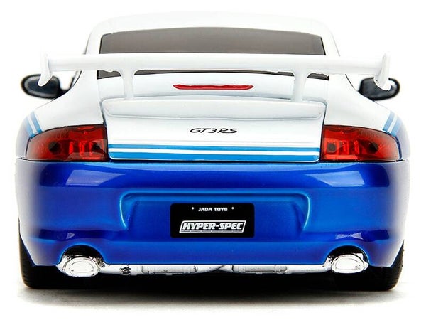 - Brand new 1/24 scale diecast car model of Porsche 911 GT3 RS (996) #845 White and Blue Metallic "Toyo Tires" "Hyper-Spec" Series die cast model car by Jada.