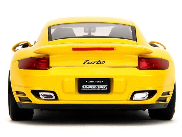 - Brand new 1/24 scale diecast car model of Porsche 911 Turbo (997) Yellow with Carbon Hood "Hyper-Spec" Series die cast model car by Jada.