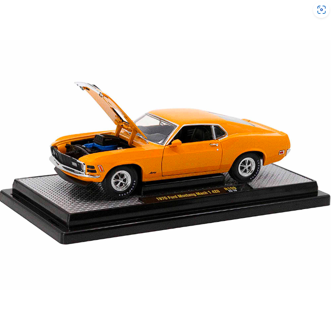 - Brand new 1/24 scale diecast car model of 1970 Ford Mustang Mach 1 428 Grabber Orange with Black Stripes Limited Edition to 5250 pieces Worldwide die cast model car by M2 Machines.