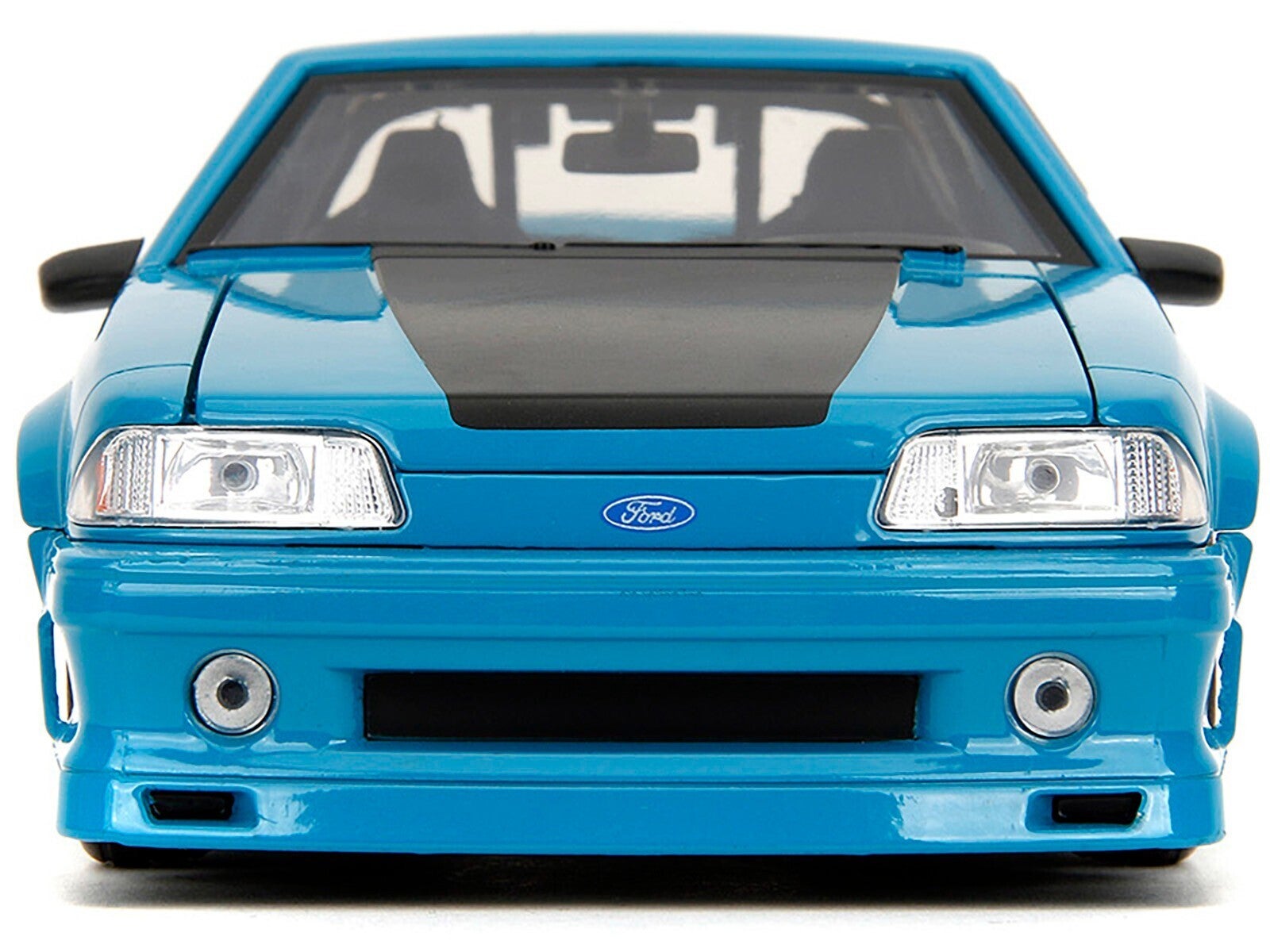 - Brand new 1/24 scale diecast car model of 1989 Ford Mustang GT Blue with Black Hood Stripes "Fast & Furious" Series die cast model car by Jada.