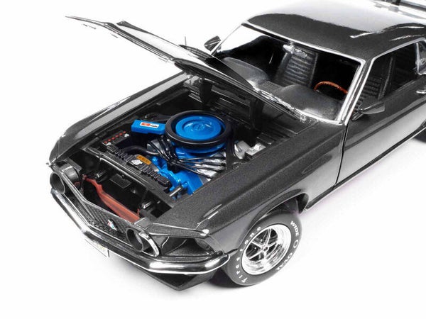 - Brand new 1/18 scale diecast car model of 1969 Ford Mustang Dark Gray Metallic with Black Stripes "John Wick" (2014) Movie "Silver Screen Machines" Series die cast model car by Auto World.