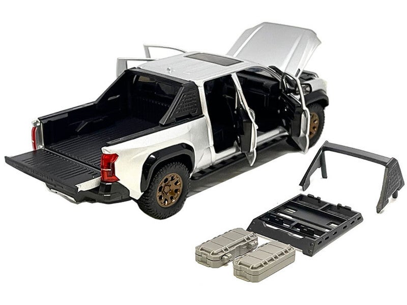 - Brand new 1/24 scale diecast car model of 2024 Toyota Tacoma Trailhunter Edition Pickup Truck Silver Metallic die cast model car.